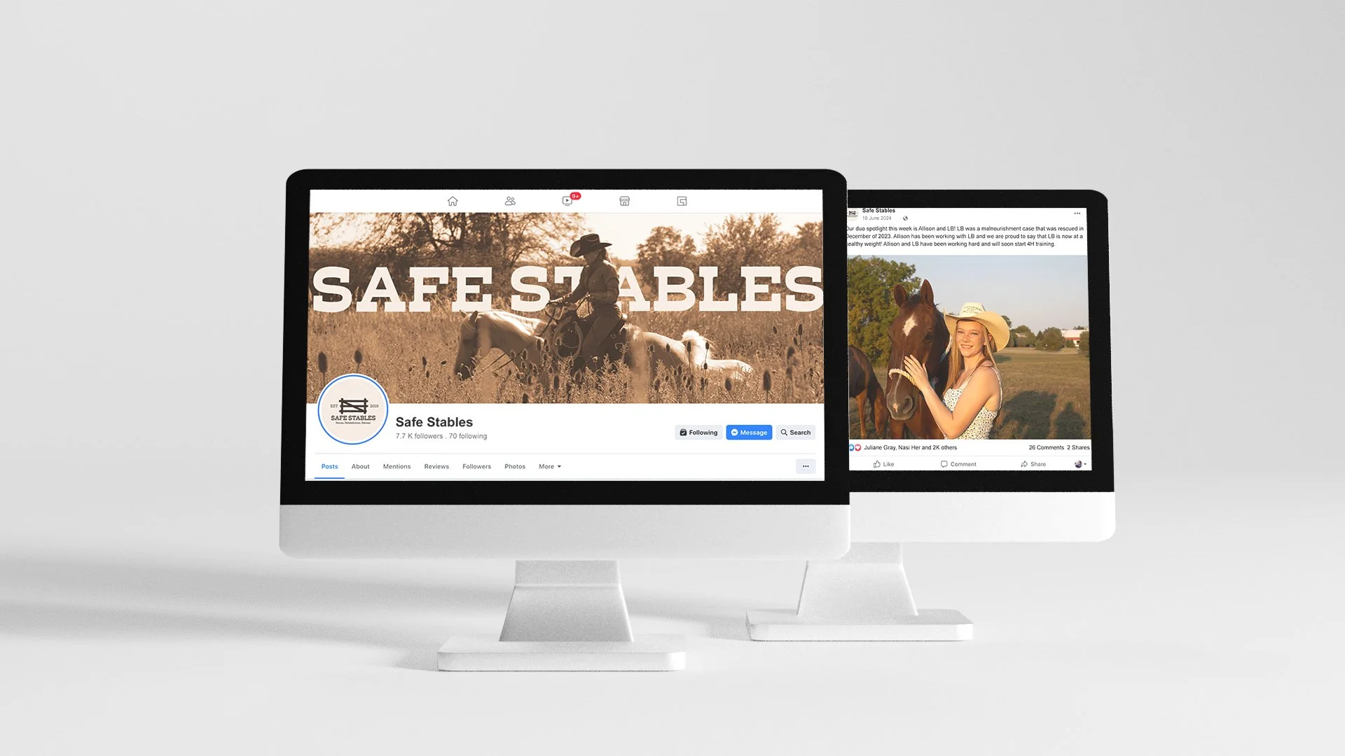 The concept of the campaign “Safe Stables” was created to bring awareness to abused and neglected horses. The problem with my original project was that there was no reason behind the photos. To build the campaign, different aspects were added, including social media, paper posters, and a brand name and logo. The decision to use the Trilby font and a monotone color palette was inspired by the iconic representation of horses in Western culture and their portrayal in Hollywood films, and it added a recognizable and nostalgic visual identity to the campaign.
